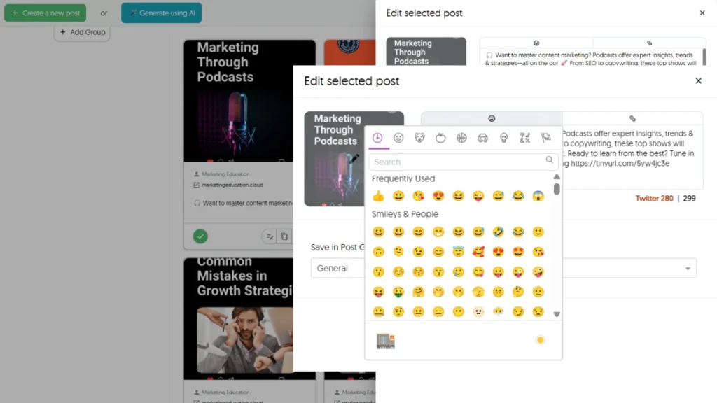 Every social platform has its own way of handling posts. Facebook lets you go longer with your text. Twitter keeps things short. Instagram leans more on visuals and emojis, while LinkedIn prefers a clean, professional tone. That’s where the Emojis & URL Shortener for Social Media Planning feature in Squirrly Social comes in handy.